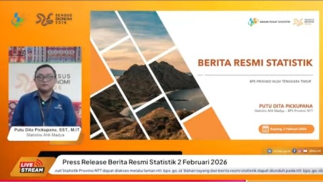Demikian diungkapkan Ketua Tim Statistik Distribusi BPS NTT, Putu Dita Pickupana, saat jumpa pers virtual, Senin (2/2/2026).